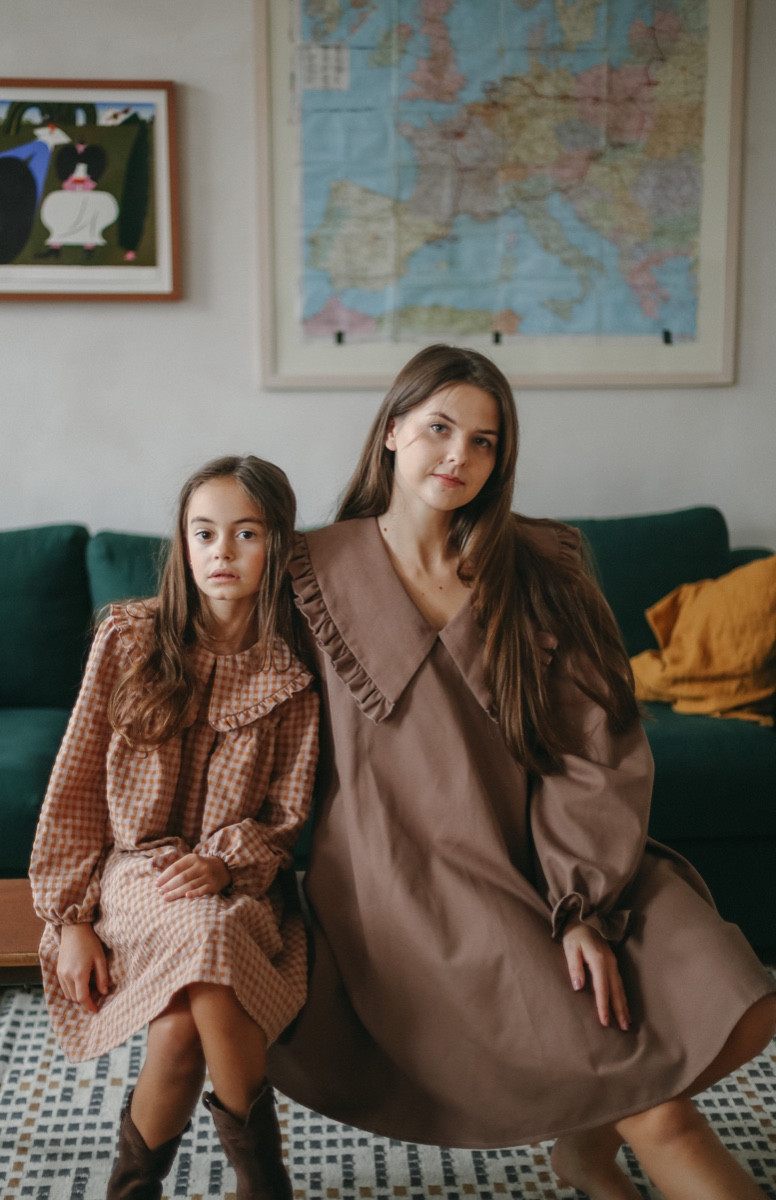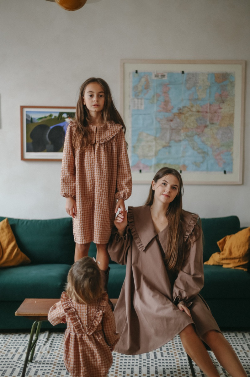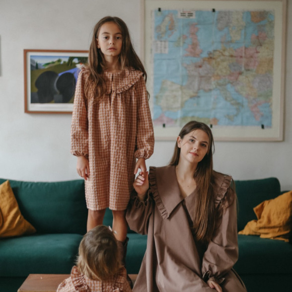 Brīva piegriezuma rūtaina sieviešu kleita ar apkaklīti