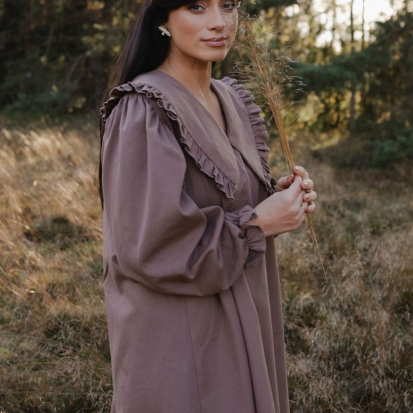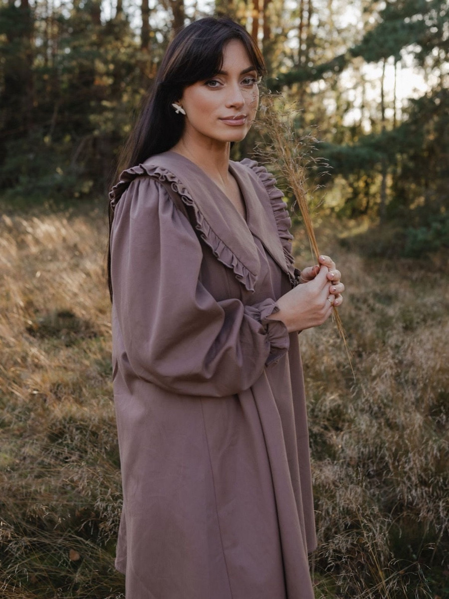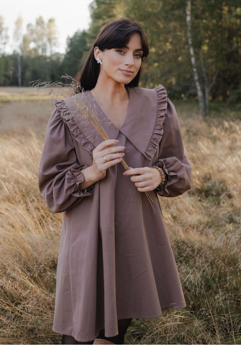 Sieviešu kleita ar apkakli - taupe