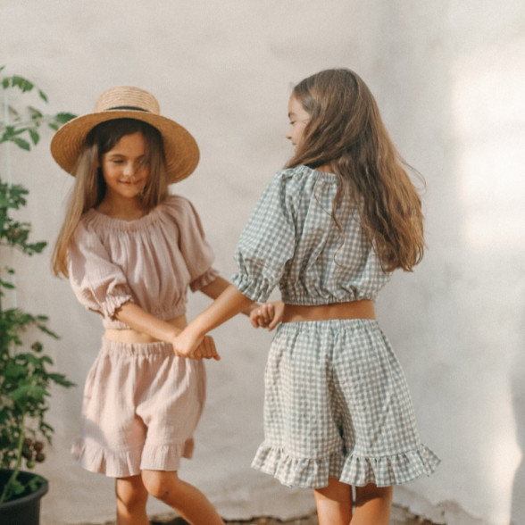 Rūtaina kleita ar volānu - rozā