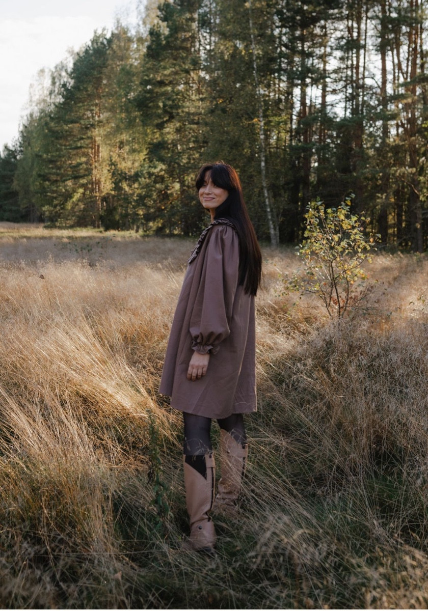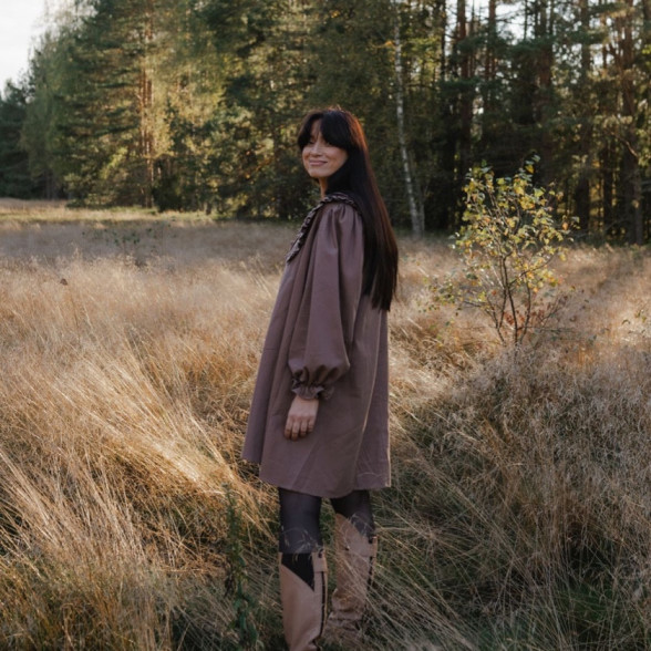 Sieviešu kleita ar apkakli - taupe
