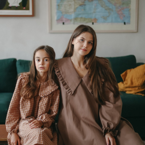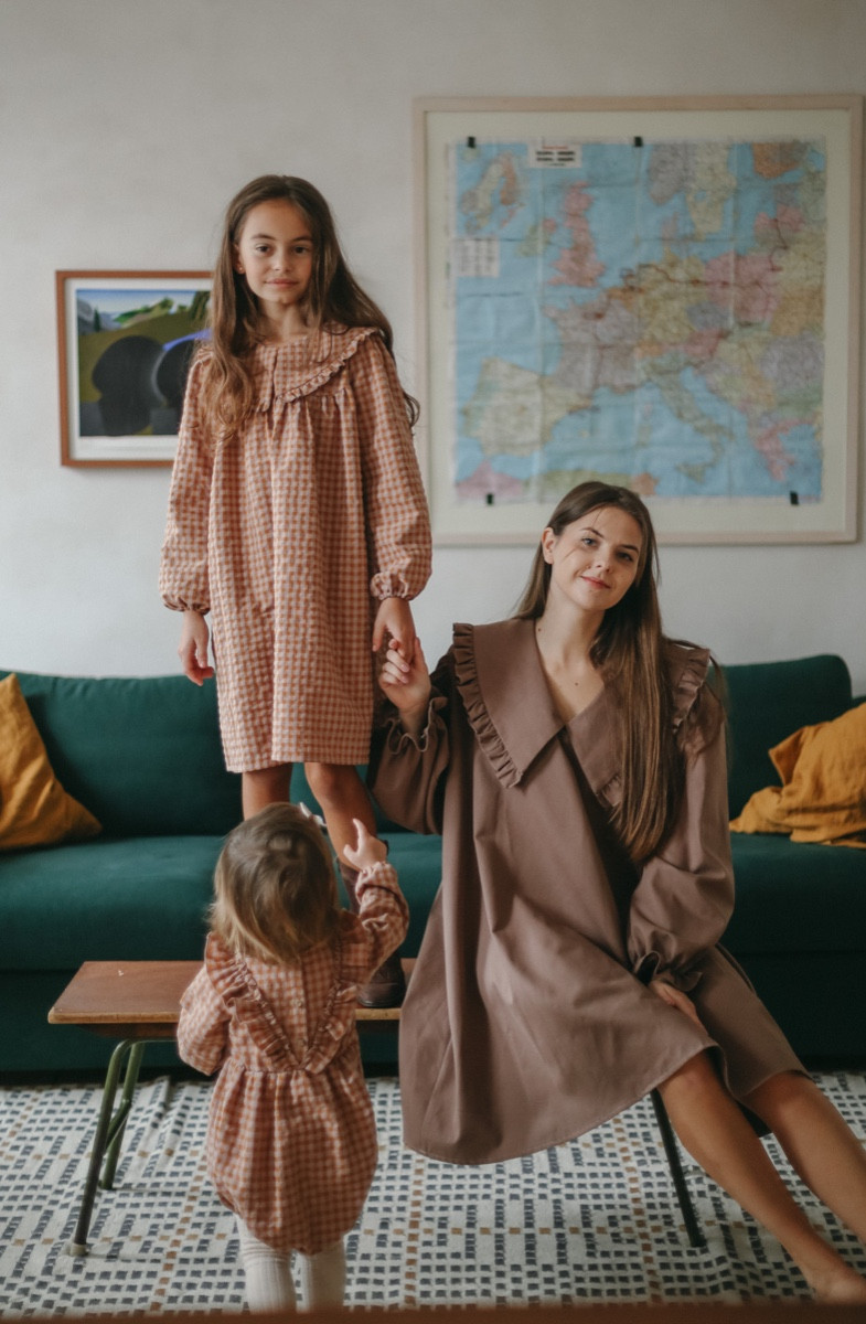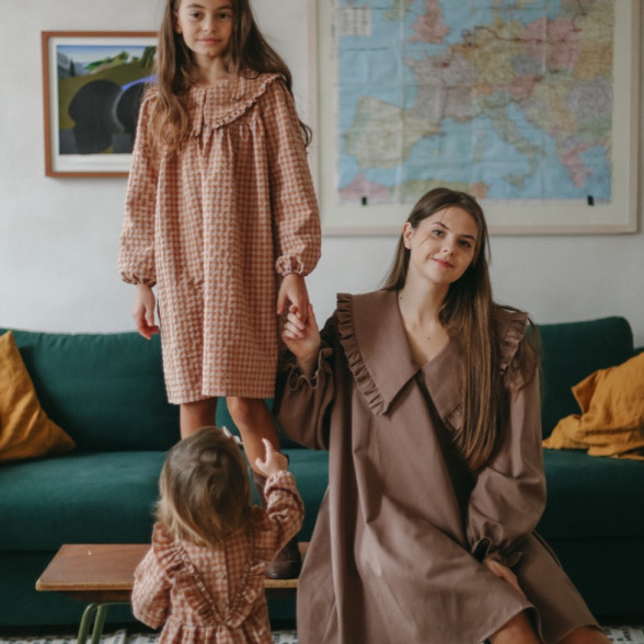 Brīva piegriezuma rūtaina sieviešu kleita ar apkaklīti
